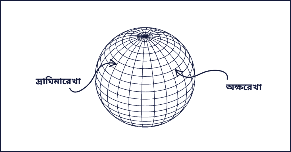 অক্ষাংশ হল কোনো স্থান থেকে নিরক্ষরেখার কৌণিক দূরত্ব। দ্রাঘিমা হল মূলমধ্যরেখা থেকে পূর্ব বা পশ্চিমে ঐ স্থানের কৌণিক দূরত্ব। পৃথিবীকে দুটি গোলার্ধে ভাগ করা হয়েছে: উত্তর গোলার্ধ ও দক্ষিণ গোলার্ধ। এছাড়াও আছে কর্কটক্রান্তি রেখা, মকরক্রান্তি রেখা, সুমেরুবৃত্ত ও কুমেরুবৃত্ত।