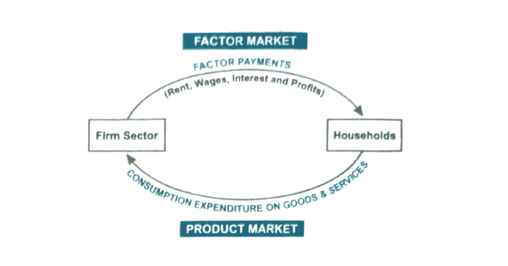 These factor incomes are known as rent, wages, interest, and profit which have been generated in the production process. Thus, money income flows from the firm sector to the households. With this money, the households purchase from the firms, manufactured goods and services to satisfy their wants with the result that the same money flows back from households to the firm sector. Thus, the entire income of the economy comes back to firms in the form of sale revenue.